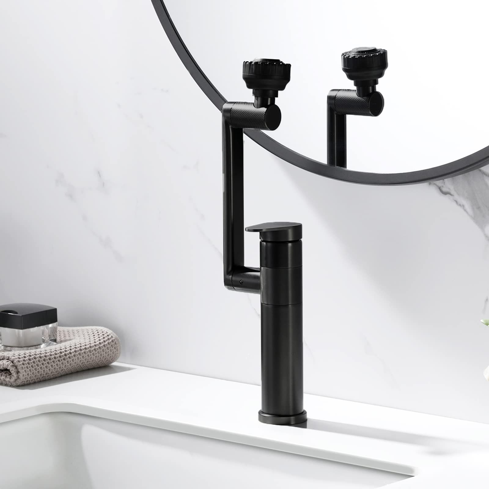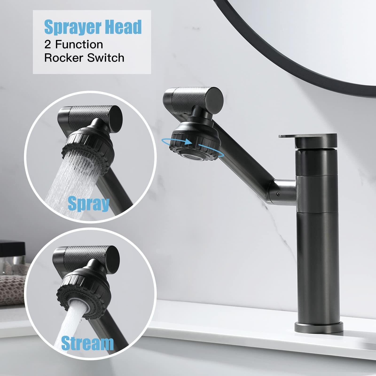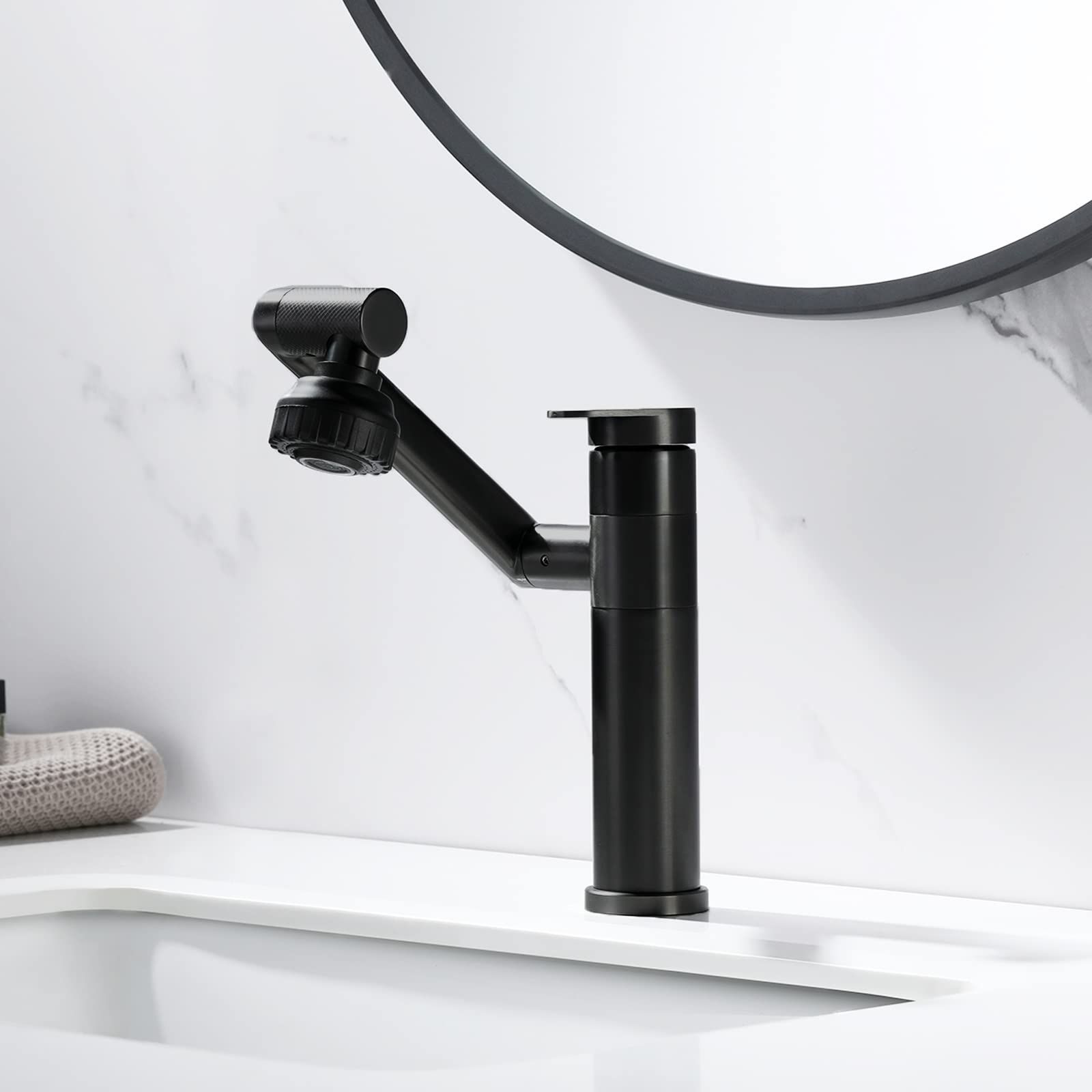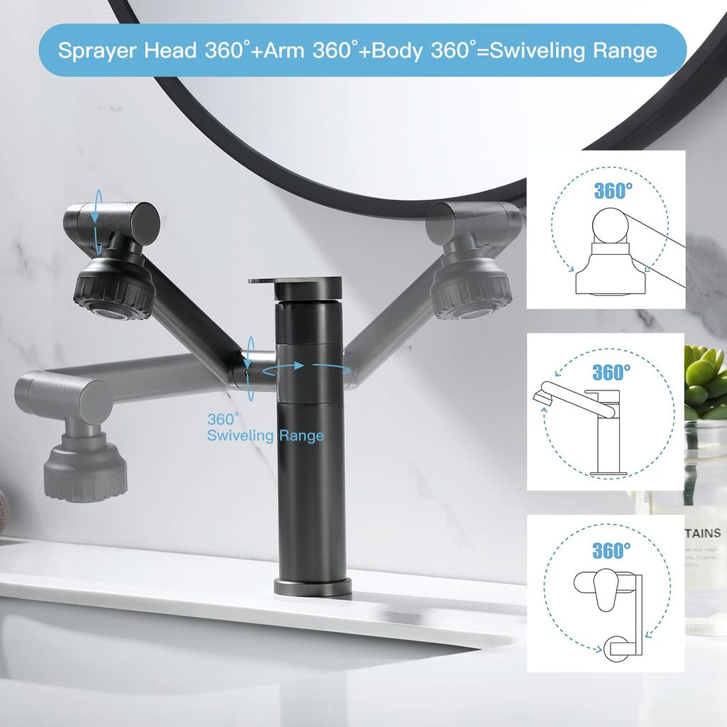 🔥Hot Seller🔥 Nairobi COD!Black Bathroom Faucet 1080 Degree Swivel Lavatory Basin Sink Faucet 1 Handle Big Angle Spray Aerator Spout Extender Universal Rotating Splash Filter 2 Water Outlet Modes